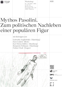 Sehr herzlich laden der SFB 1472 »Transformationen des Populären« (Universität Siegen), das Warburg-Haus und die Galerie der abseitigen Künste, Hamburg, in Kooperation mit dem Istituto Italiano di Cultura di Amburgo aus Anlass des 50. Todestages von Pier Paolo Pasolini (1922-1975) am Samstag, 1. November 2025, um 16.30 Uhr zu einem Themenabend mit Vorträgen und Austausch